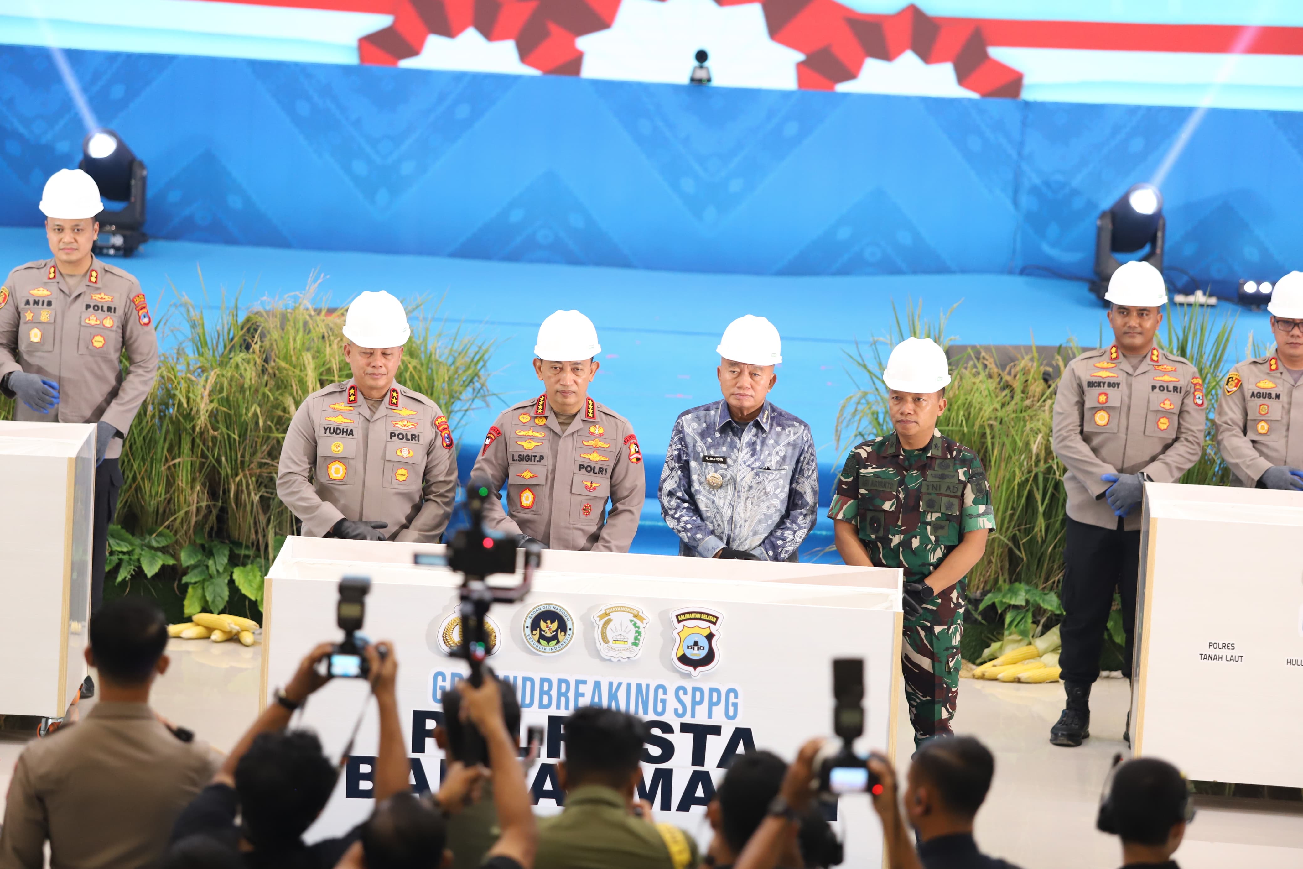Sebagai bentuk perluasan Program MBG, Jenderal Polisi Listyo Sigit melakukan groundbreaking pembangunan 10 gedung SPPG yang akan dibangun di Polresta Banjarmasin, Banjarbaru, Banjar, HSS, HST, HSU, Balangan, Tanah Laut, Kotabaru, dan Barito Kuala.