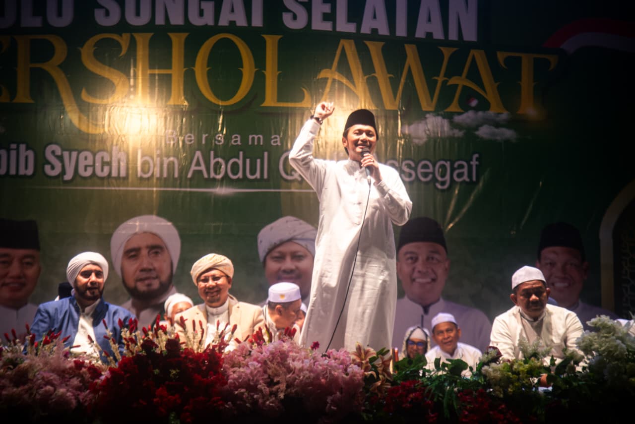 Sementara itu, Habib Syech menyampaikan doa dan harapan khusus bagi masyarakat Hulu Sungai Selatan. Dengan penuh kelembutan, beliau menegaskan bahwa kehadiran ribuan jemaah dalam majelis shalawat ini merupakan bukti kecintaan kepada Rasulullah SAW sekaligus bentuk kebersamaan dalam menjaga ukhuwah Islamiyah.