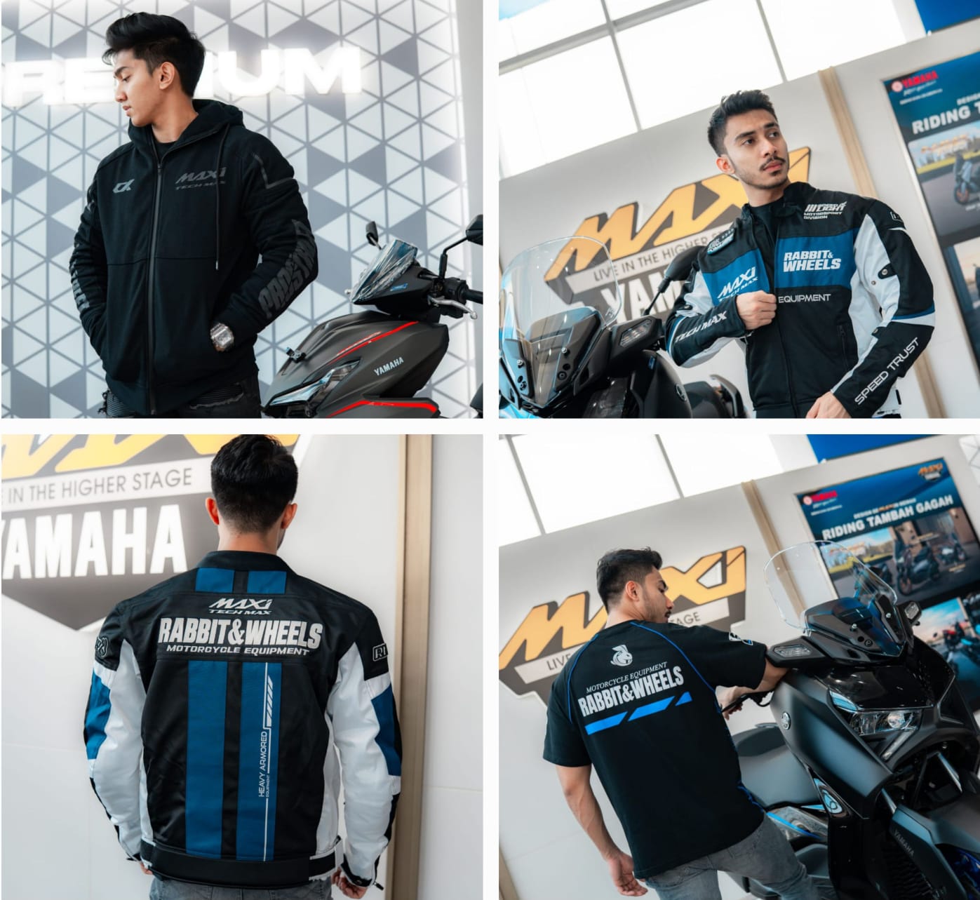 Berikut adalah spesial apparel terbaru MAXi YAMAHA hasil kolaborasi dengan Pro Street dan Rabbit & Wheels yang dapat dibeli atau dipesan oleh konsumen di seluruh jaringan dealer resmi YAMAHA terdekat :