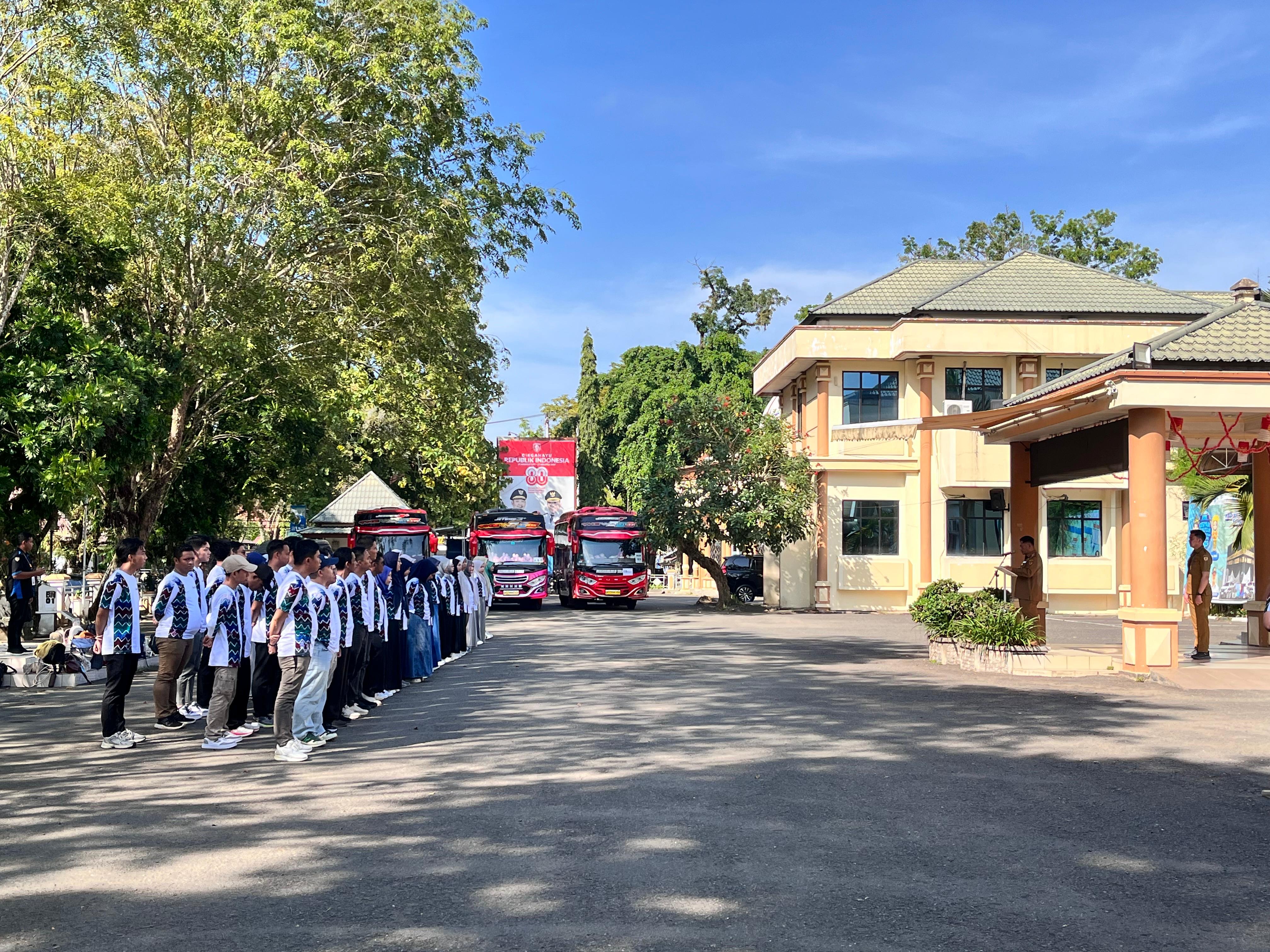 Acara pelepasan berlangsung di, Halaman Kantor Bupati HST, Senin (29/9/2025). Kegiatan Outing Class kali ini dipusatkan di Aeera Glamping Kiram, Banjarbaru.