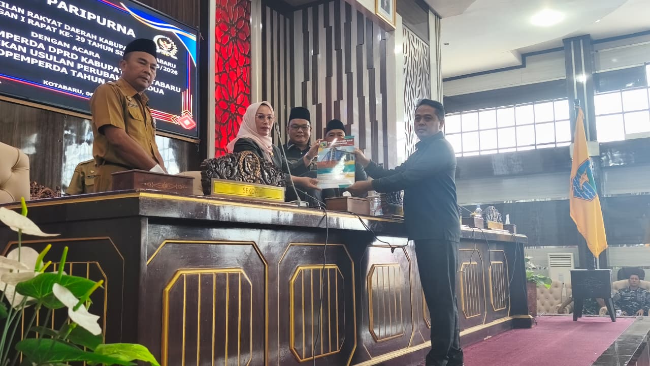MEGAPOLIS.ID, KOTABARU– Dewan Perwakilan Daerah (DPRD) Kotabaru memparipurnakan laporan Bapemperda (Badan Pembentukan Peraturan Daerah) usulan perubahan tahun 2025 pada masa persidangan I rapat ke -29 tahun sidang 2025/2026.
