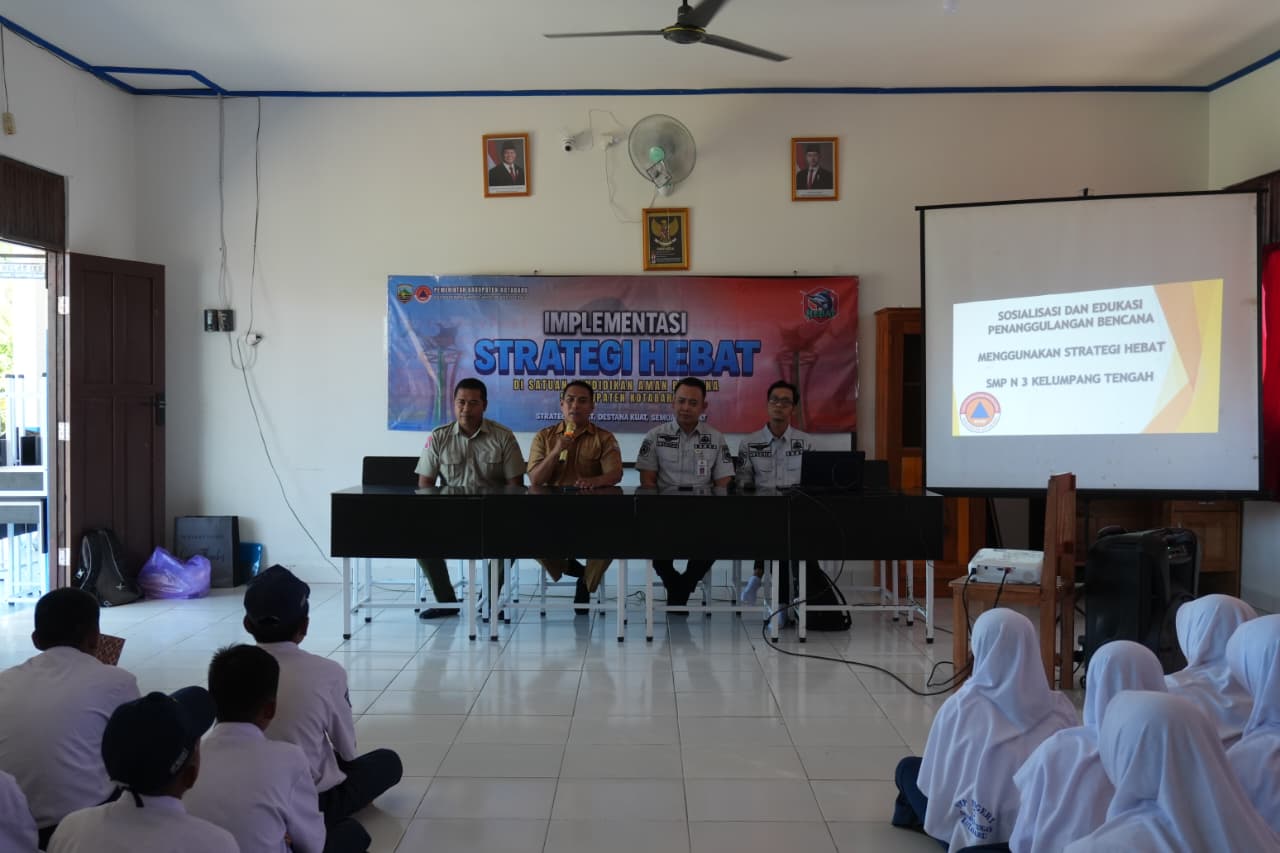 Melalui implementasi Strategi HEBAT (Hexahelix Edukatif, Beraksi, Antisipatif, dan Tanggap), BPBD menggelar kegiatan edukasi kebencanaan di SMPN 3 Kelumpang Tengah, Selasa (7/10/2025).