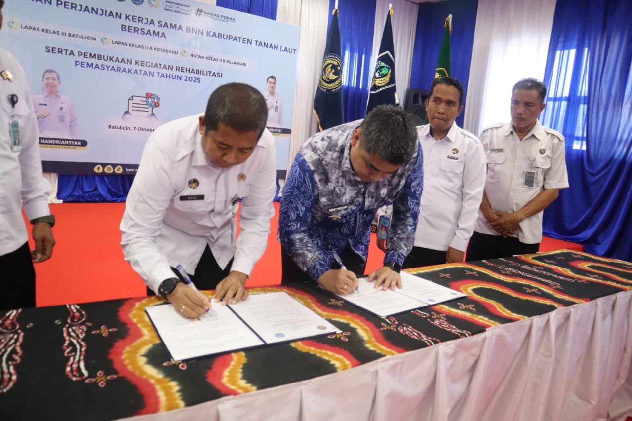 Penandatanganan Perjanjian Kerja Sama (PKS) tersebut dilaksanakan di Aula Lapas Batulicin, Selasa (7/10).