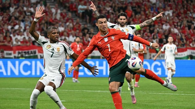 Ronaldo mencetak dua gol saat Portugal bermain imbang 2-2 melawan Hungaria dalam laga lanjutan Grup F Kualifikasi Piala Dunia 2026 zona Eropa di di Estadio Jose Alvalade, Lisbon, Rabu (15/10) dini hari WIB.