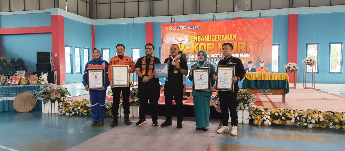 MEGAPOLIS.ID, KOTABARU– Pemerintah Kabupaten Kotabaru melalui Badan Penanggulangan Bencana Daerah (BPBD) Kotabaru terima penghargaan dari Museum Rekor-Dunia Indonesia (MURI) sebagai penyelenggara pelatihan talenta digitalisasi bagi UMKM di wilayah pasca bencana secara serentak oleh peserta terbanyak pada tingkat kabupaten.