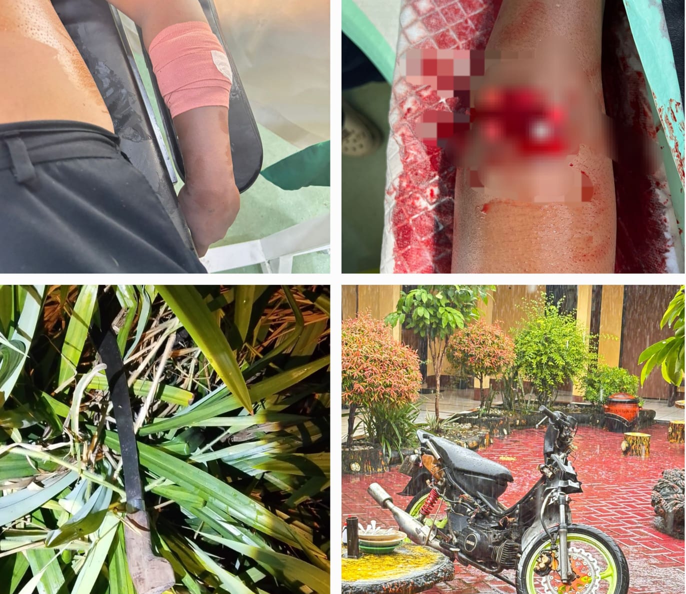 Dalam situasi panik, motor terjatuh. Korban MA (14) yang mendekat langsung diserang oleh AL menggunakan parang hingga mengenai pergelangan tangan kirinya. DF mengambil celurit yang terjatuh, sedangkan SL melarikan diri ke arah warung warga.