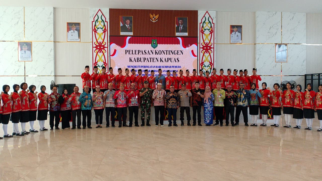 MEGAPOLIS.ID, KUALA KAPUAS – Bupati Kapuas H Muhammad Wiyatno melepas Kontingen Kabupaten Kapuas yang akan mengikuti peringatan Hari Sumpah Pemuda ke-97 dan Ikrar Bersama Anak Bangsa tingkat Provinsi Kalimantan Tengah di Kabupaten Sukamara, bertempat di Hall Rumah Jabatan Bupati Kapuas, Kamis (24/10/2025).