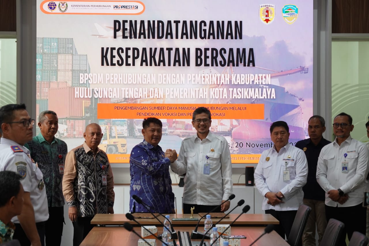 MEGAPOLIS.ID, JAKARTA – Pemerintah Kabupaten Hulu Sungai Tengah (HST) menandatangani kesepakatan bersama dengan Badan Pengembangan Sumber Daya Manusia (BPSDM) Perhubungan Kementerian Perhubungan, sekaligus perjanjian kerja sama dengan Politeknik Transportasi Darat Indonesia (PTDI) – STTD, berlangsung di Ruang Rapat 1 Sekretariat BPSDM Perhubungan pada Kamis (20/11/2025).