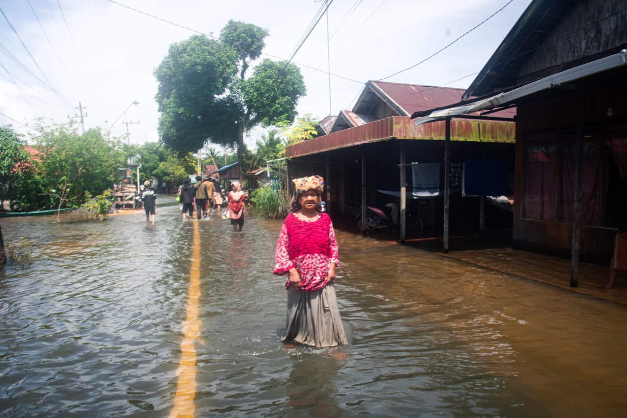 “Rumah-rumah warga terendam banjir dan ketinggian air sampai sedada orang dewasa. Hampir sebulan kami merasakan banjir di sini, dampaknya dari wilayah hulu,” ujar Rafii.