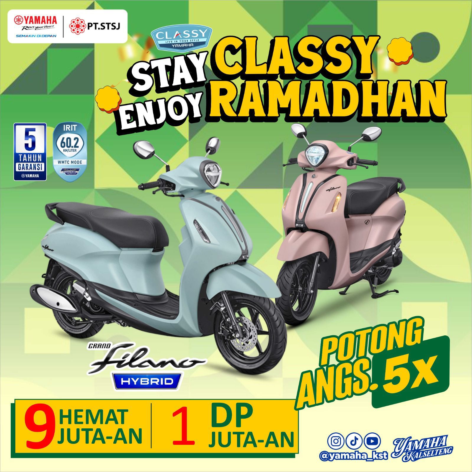 Untuk pecinta skutik bergaya elegan, Yamaha menghadirkan Grand Filano Hybrid dan Fazzio Hybrid dalam program “Stay Classy, Enjoy Ramadhan”.