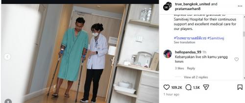 Cedera parah juga dialami pemain yang merumput di Liga Thailand bersama Bangkok United, Pratama Arhan. Ia baru saja mengalami cedera lutut dan diprediksi absen hingga akhir musim.