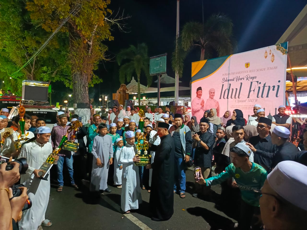 Mengakhiri sambutannya, dengan mengucapkan “Bismillahirrahmanirrahim”, Bupati Samsul Rizal secara resmi melepas pawai takbiran keliling Idul Fitri 1447 H di Kabupaten Hulu Sungai Tengah.